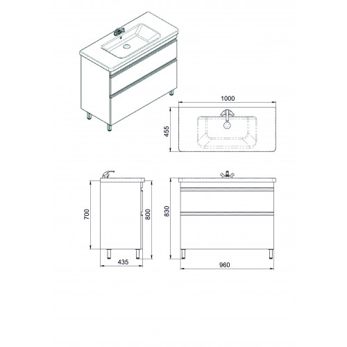 Matmenys su praustuvu 1000x455x830